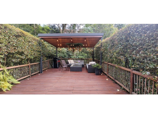 La propiedad tiene un área construida de 164 m2 más 45 m2 de una agradable terraza con deck y pérgola, más jardín interno.
